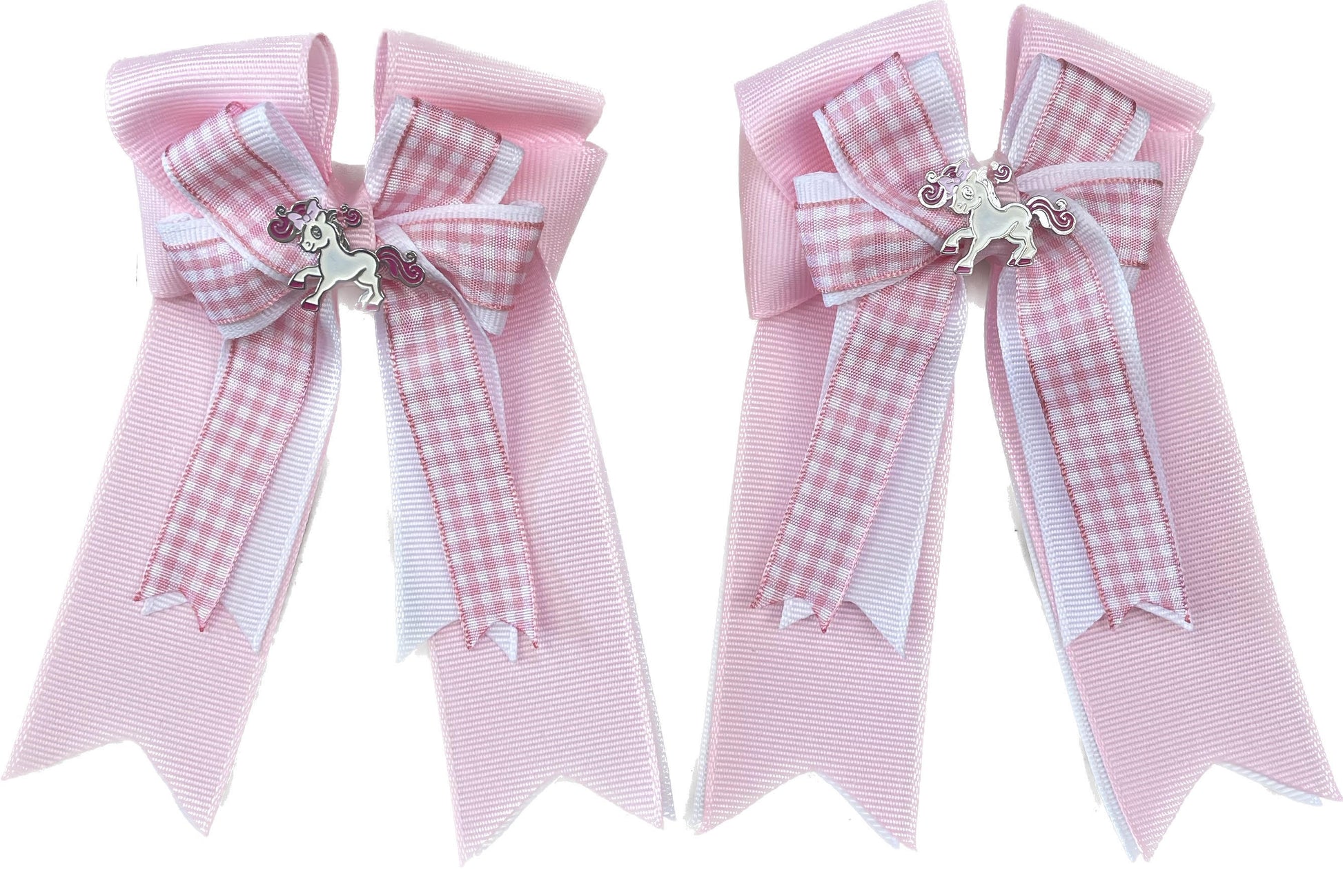 The Bows that started it all…. Belle & Bow Show Bows win in the ring and are a staple of every pony girl’s wardrobe! Often imitated, never surpassed. Proudly designed and manufactured in Massachusetts, USA. Elastic attachment sized for pigtails. Watch our you tube video on how to put them on properly and make them stay in and last
