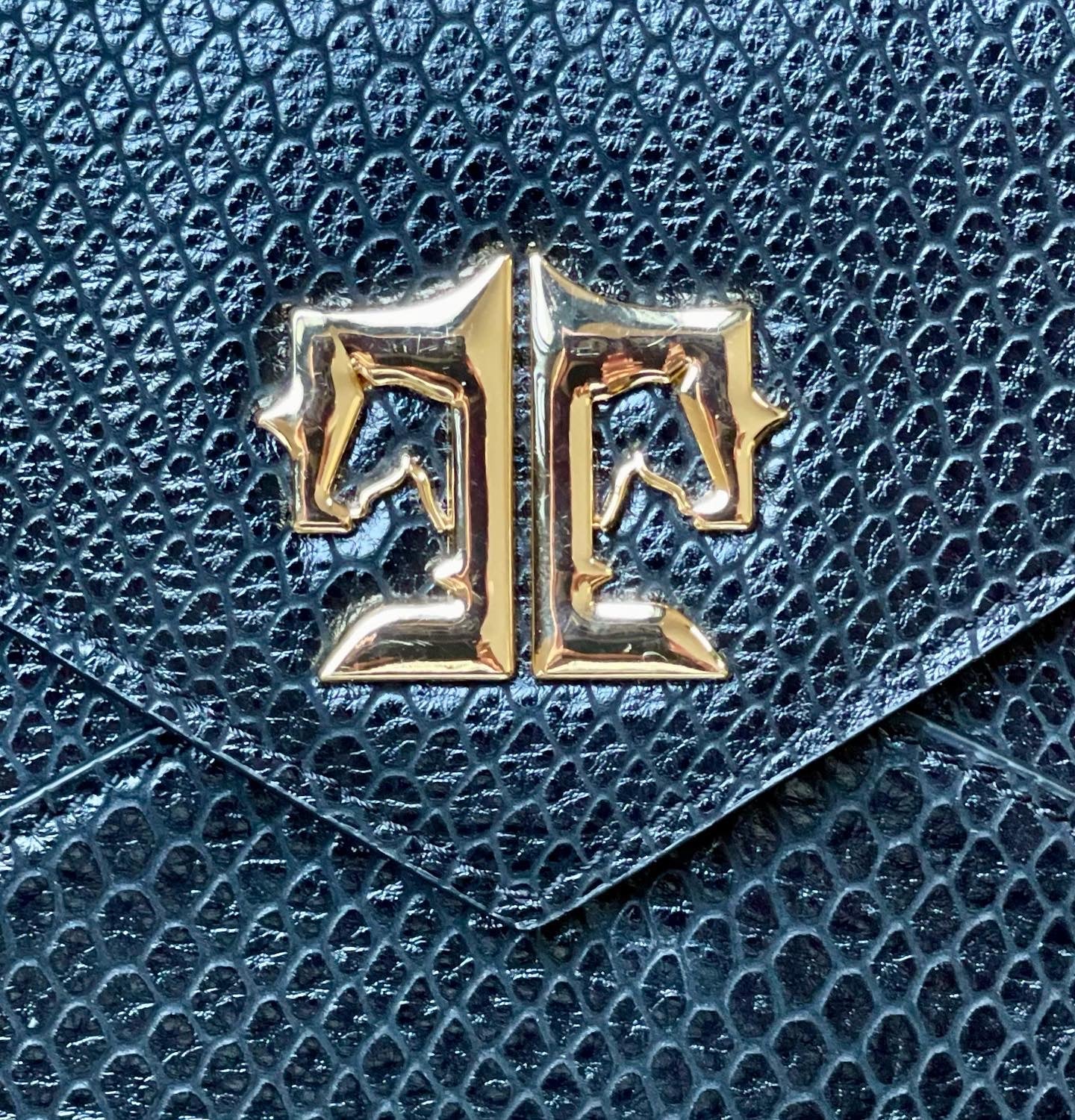 From ringside to date night, and everything in between—introducing the Cor De Star Clutch. Finished in leather-embossed exotic skins, including ostrich and snake, this equestrian cocktail clutch elevates your style to new heights. Featuring gold or gun metal signature logo, supple leather interior with 3 credit card slots, and a private zip pocket on exterior. Optional mini-curb chain shoulder strap and wristlet included. Next-level equestrian style for your next special occasion.