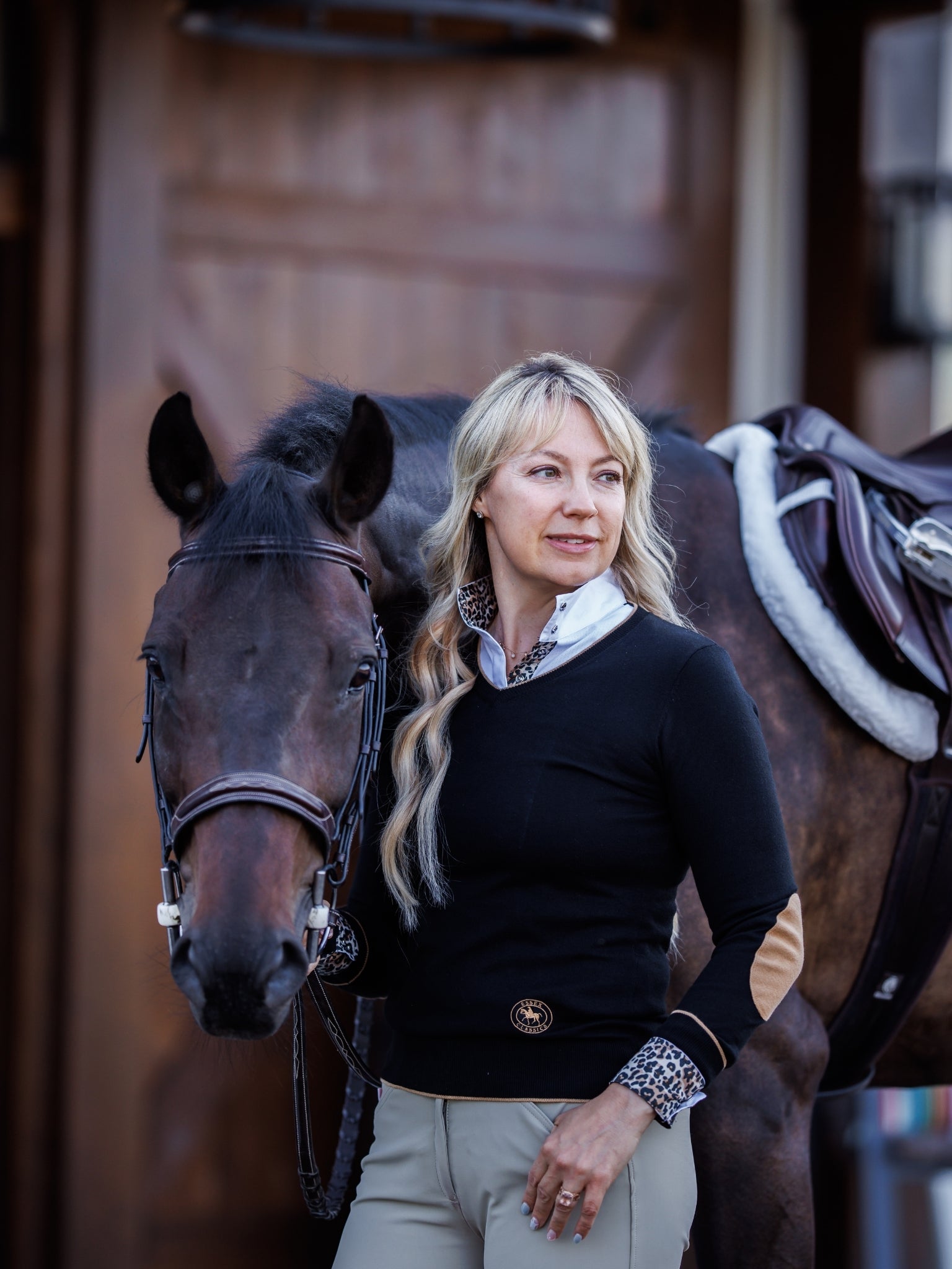 Ladies "Luna II" Black with Leopard Long Sleeve Performance Show Shirt