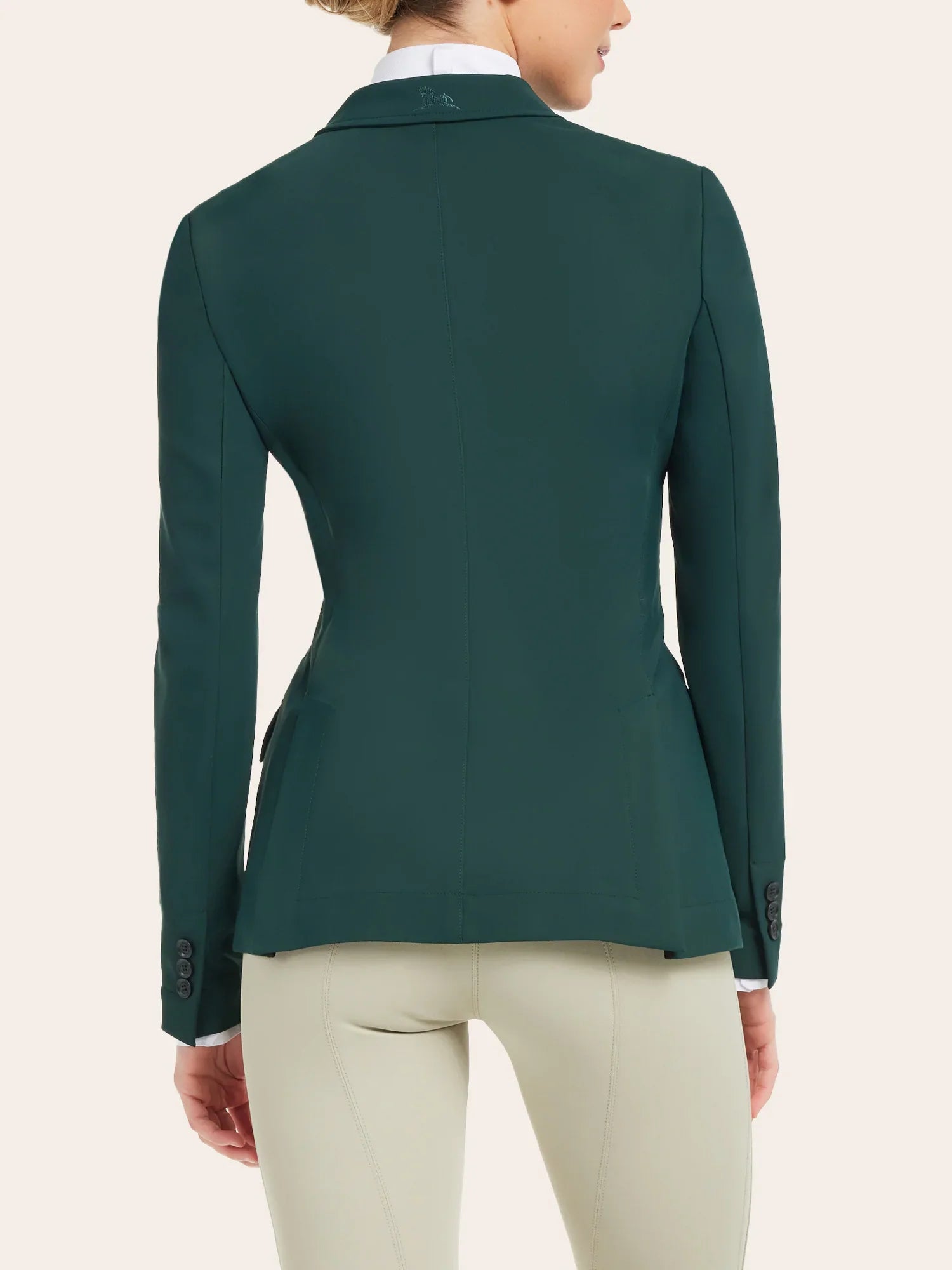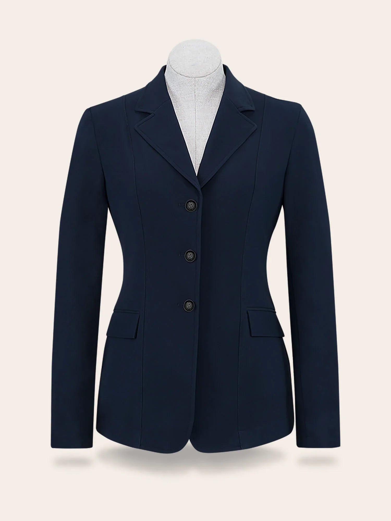 RJ Classics Monterey Show Coat features classic 3-button styling with flap pockets and a concealed interior zipper. The unconstructed Orange Label design eliminates lining and shoulder pads for unrestricted movement. Crafted from premium Italian Jersey with UPF 50 protection, quick-dry properties, and wrinkle-resistant finish—ideal for competition and travel. Eco-conscious construction delivers performance without excess waste.